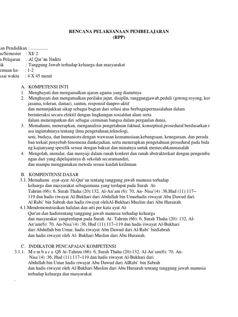 Rencana Pelaksanaan Pembelajaran K13 Qur An Xi Docx